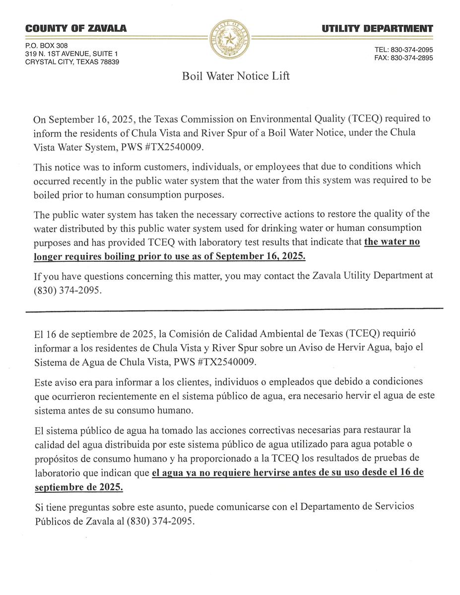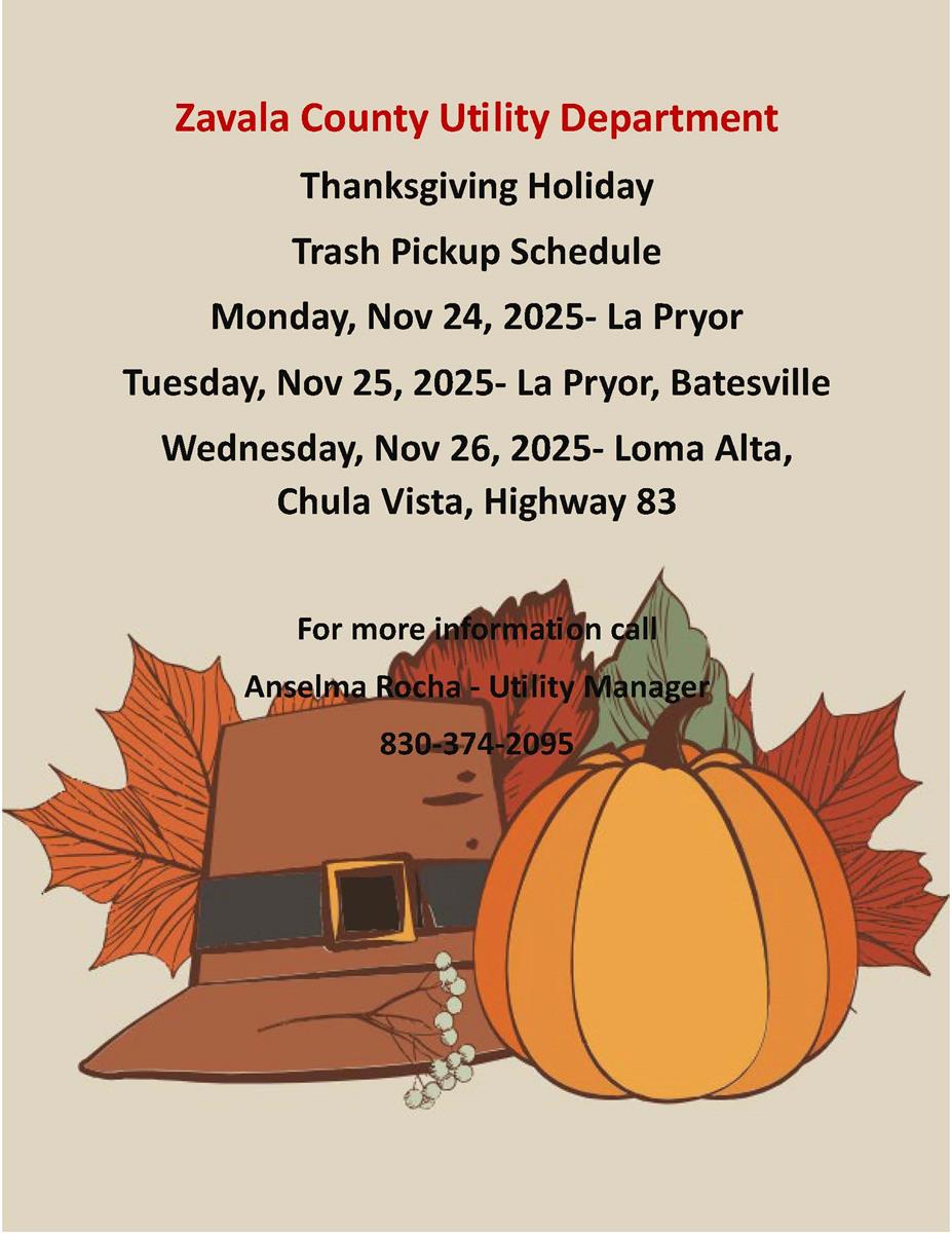 Email: coutility@zavalacounty.org